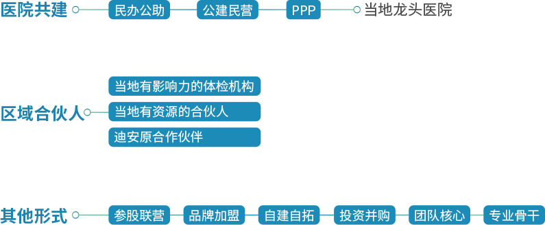 迪安健检依托迪安诊断诊疗一体化平台,以公立医院合作共建为主导,以深度体检为入口、持续创新为动力、信息化集成为手段、会员制服务为目标、打造集健康体检、健康管理、医疗服务和健康保险于一体的区域性连锁健康服务机构。